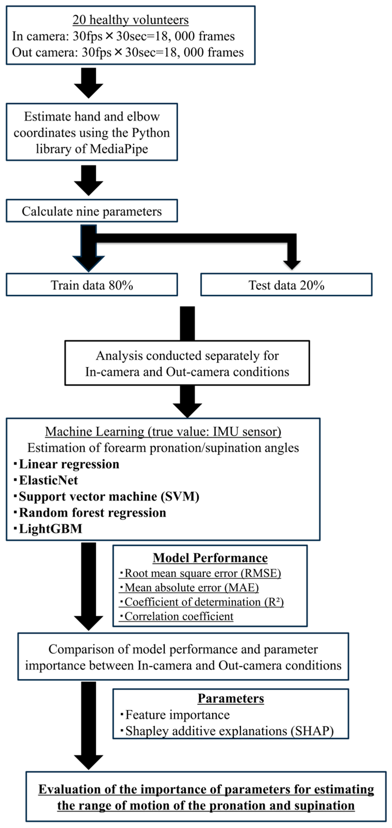 Kusunose M, Inui A, Mifune Y, Yamaura K, Shinohara I, Tanaka S, Ehara Y, Takigami S, Osawa S, Nakabayashi D, et al. Estimation of Forearm Pronation–Supination Angles Using MediaPipe and IMU Sensors: Performance Comparison and Interpretability Analysis of Machine Learning Models. Applied Sciences. 2025; 15(19):10527. https://doi.org/10.3390/app151910527