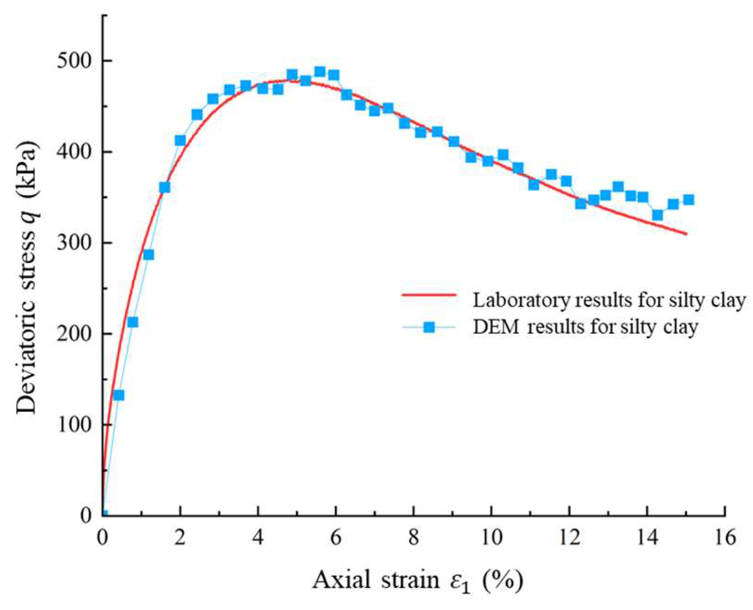 - Cheng, K.; Wang, Y.; Yang, Q.; Mo, Y.; Guo, Y. Determination of microscopic parameters of quartz sand through tri-axial test using the discrete element method. Comput. Geotech. 2017, 92, 22–40. [Google Scholar] [CrossRef]