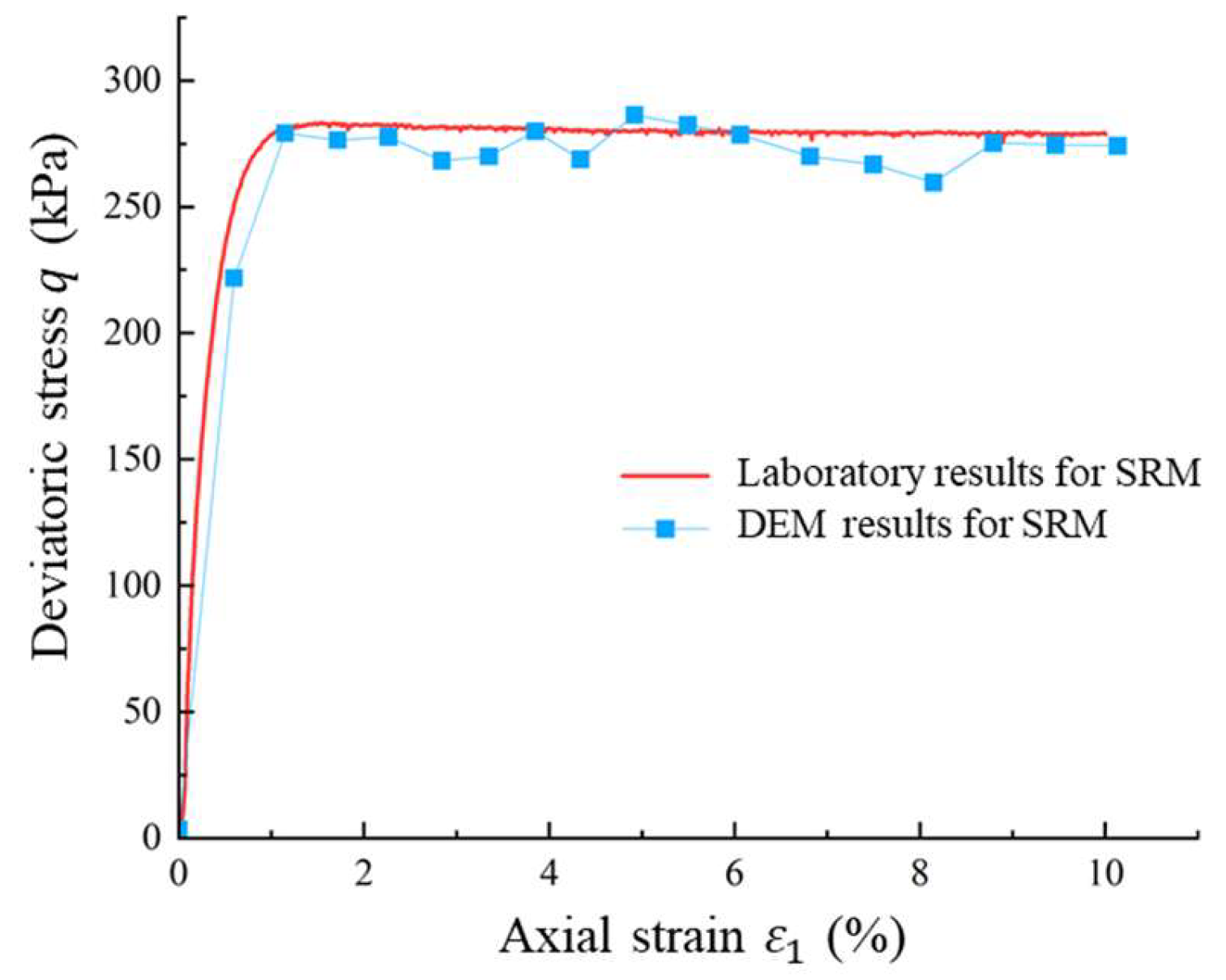 - Jiang, C.; Zeng, L.; Liu, Y.; Mu, Y.; Dong, W. A DEM Study on the Macro-and Micro-Mechanical Characteristics of an Irregularly Shaped Soil–Rock Mixture Based on the Analysis of the Contact Force Skeleton. Appl. Sci. 2025, 15, 7978. [Google Scholar] [CrossRef]