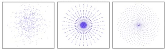 Due to the uncertain distribution of sampling data in the NUFFT algorithm, different sampling methods can have a significant impact on performance. Therefore, when optimizing the program, the load balancing problems caused by different datasets need to be considered. This program uses three representative datasets: Random, Radial, and Spiral, which fully demonstrate the performance of the NUFFT algorithm. As shown in Figure 3, the Random dataset has randomly distributed data points, the Radial dataset has a radial distribution with denser data points near the center, and the Spiral dataset has a spiral distribution.