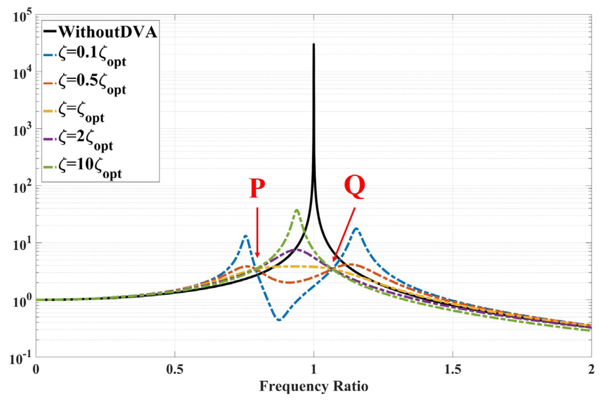 18], the frequency response curve will always pass through two fixed points (point P and point Q), as shown in