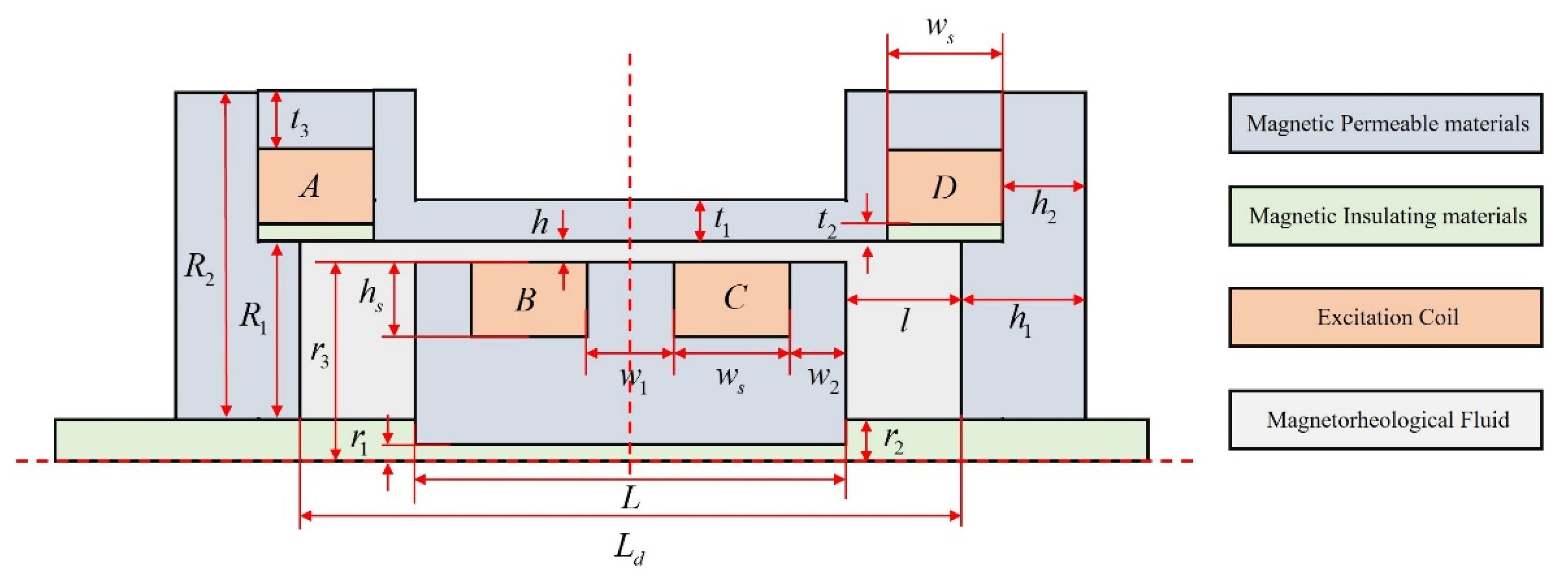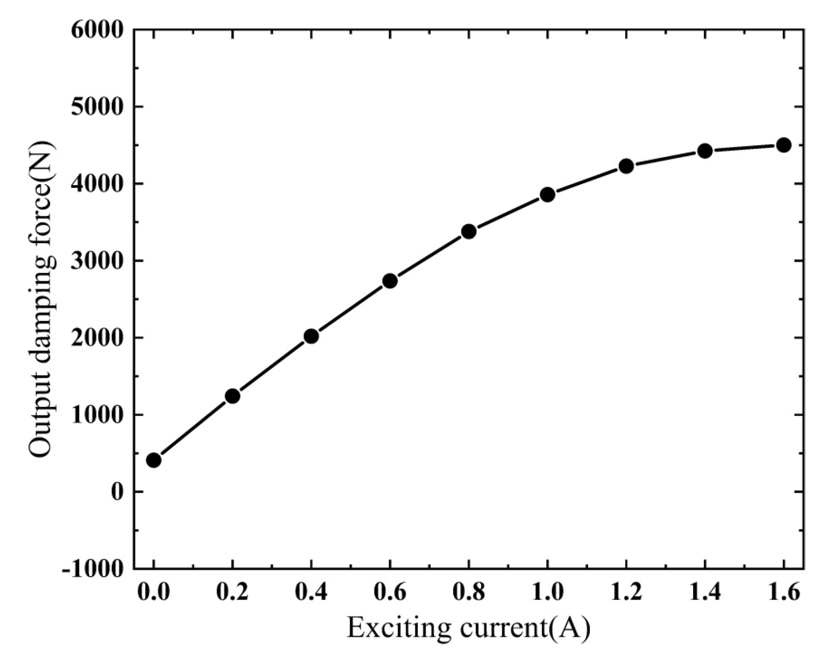 Table 3. Using the least squares method to fit the experimental data provided by the manufacturer with a fourth-degree polynomial, the relationship between the yield stress of magnetorheological fluid and average magnetic flux density is obtained as follows: