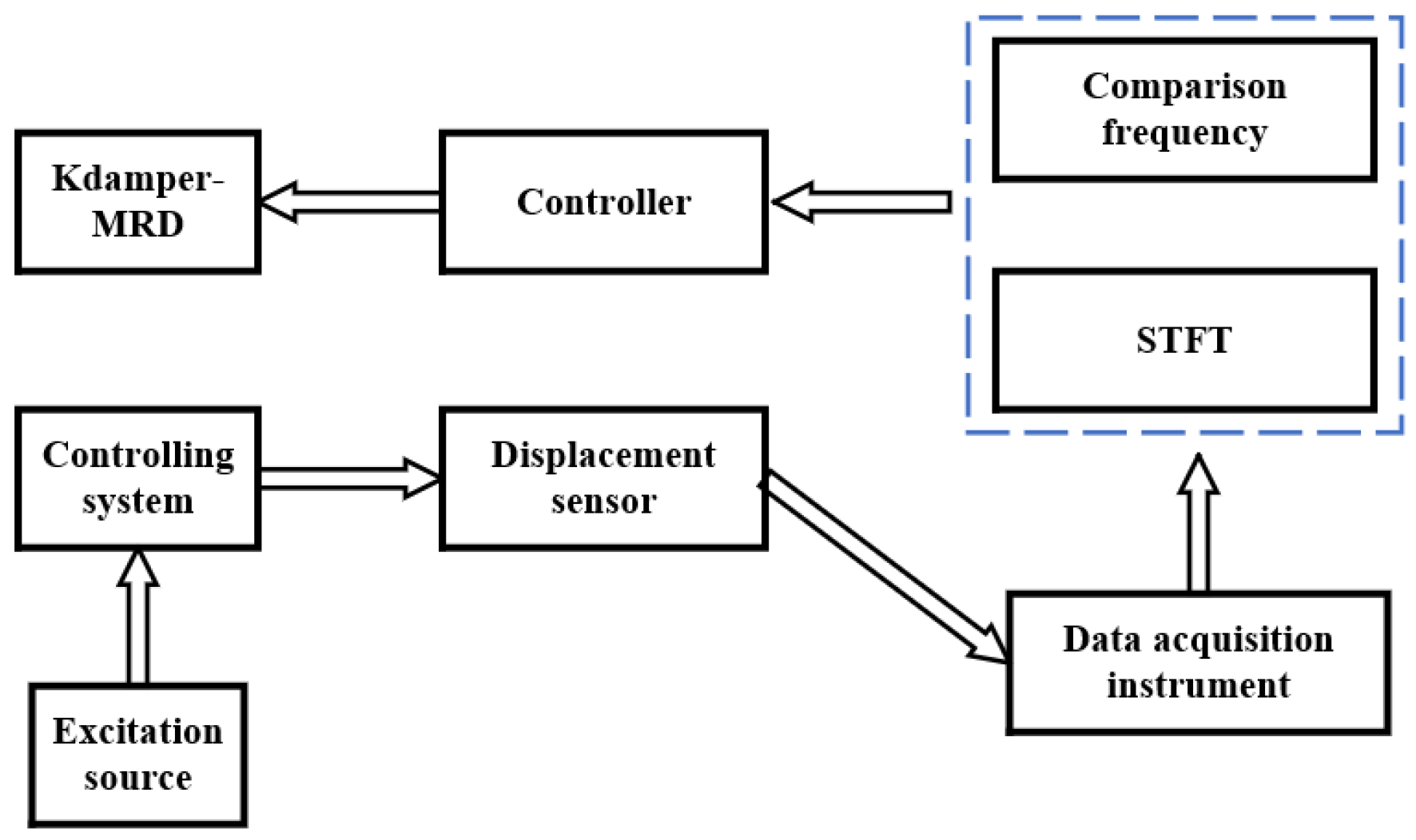 8]. New propulsion shaft systems are currently being applied to high-speed patrol ships. Controlling the longitudinal vibration of the propulsion shaft system by adding a vibration controller to it is one of the commonly adopted vibration control strategies. Passive vibration controllers are characterized by simple structure, low cost, and high reliability. However, once the internal structure parameters have been determined, they cannot be modified, resulting in poor adaptability and a relatively narrow operating frequency band. Active vibration controllers can respond to external excitation in real time to achieve vibration suppression in a wide frequency band. However, the reliability is poor and the cost is high. A semi-active control does not require the input of a large amount of external energy and signals, and with a low cost and high reliability, subject to certain failures in the system, a semi-active control system can be considered a passive vibration control system. Current research in vibration control includes the following aspects: the resonance changer (RC) [