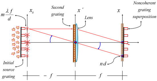 In this section, we discuss the use of two complementary gratings for implementing a novel Lau interferometer. For achieving this goal, it is convenient to reexamine the description advanced by Jahns and Lohmann, as depicted in Figure 6.