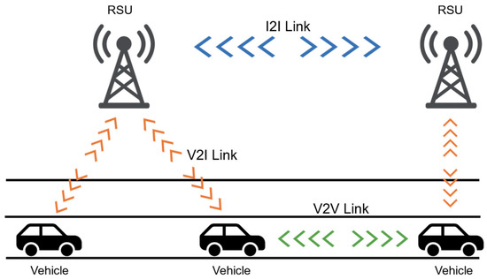Time synchronization is a fundamental component of ITS, ensuring coordinated operations among vehicles, RSUs, and broader infrastructure networks. As shown in Figure 1, ITS encompasses multiple communication paradigms, including V2V, V2I, and I2I interactions, each requiring precise and reliable synchronization mechanisms to support safety-critical applications, efficient channel access, and consistent data fusion [1,2,3]. Furthermore, accurate time synchronization is essential for localization, as it directly enables high-precision and dependable positioning within ITS environments [11,12].