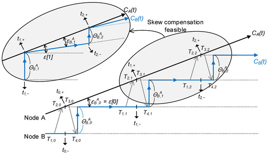 Following this, Node B initiates skew compensation by modifying its clock frequency accordingly. A detailed explanation of the implementation aspects of this skew compensation approach is provided in Section 5.2.