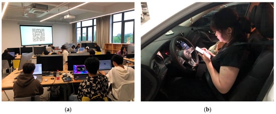The recruitment snapshot of respondents. (a) Lectures; (b) parking lots.