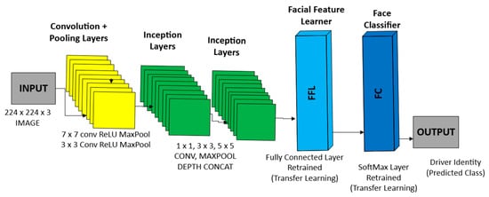 This modification was crucial to shift the network’s focus from generic object classification to fine-grained identity recognition. Without these changes, GoogLeNet would output object-level categories (e.g., “person,” “car”) rather than uniquely identifying drivers. Fine-tuning only the final layers (transfer learning) helps retain the network’s feature-extraction capability. At the same time, it allows the model to specialize in facial authentication.