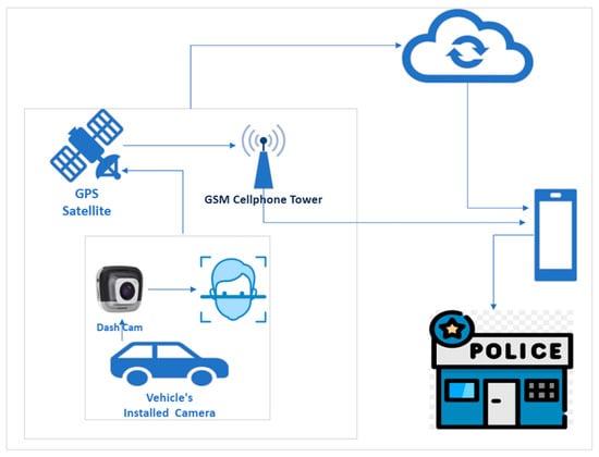 Other researchers explored additional approaches. Ref. [30] used IP webcams for image capture and integrated an alarm and locking system, though it only secured door access. Ref. [31] proposed a face-authentication system that denied vehicle access to unauthorized users, but it lacked location tracking capabilities. Ref. [32] designed a multi-layered security model involving password-based entry and a secret locking mechanism with alerts to both the police and the owner. Ref. [33] proposed an anti-theft control system based on an embedded system design that alerts the owner and police in the event of unauthorized access. However, their system relies primarily on hardware-based triggers and does not incorporate real-time biometric authentication. However, this system’s reliance on passwords and physical mechanisms may introduce usability and security risks. Together, these studies underscore the need for real-time, intelligent vehicle security systems that integrate efficient authentication with precise location tracking and low-latency alerts.