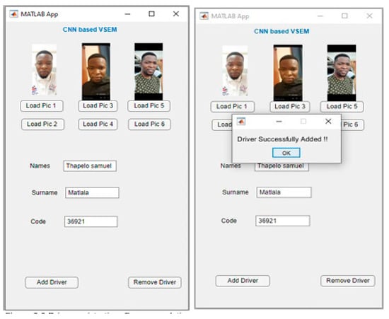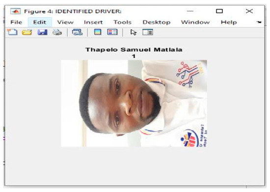 Following the feature extraction and comparison process, the system successfully recognized the driver, identified as “Thapelo Samuel Matlala” (Figure 6). This identification enabled the vehicle’s ignition system, allowing the engine to start.