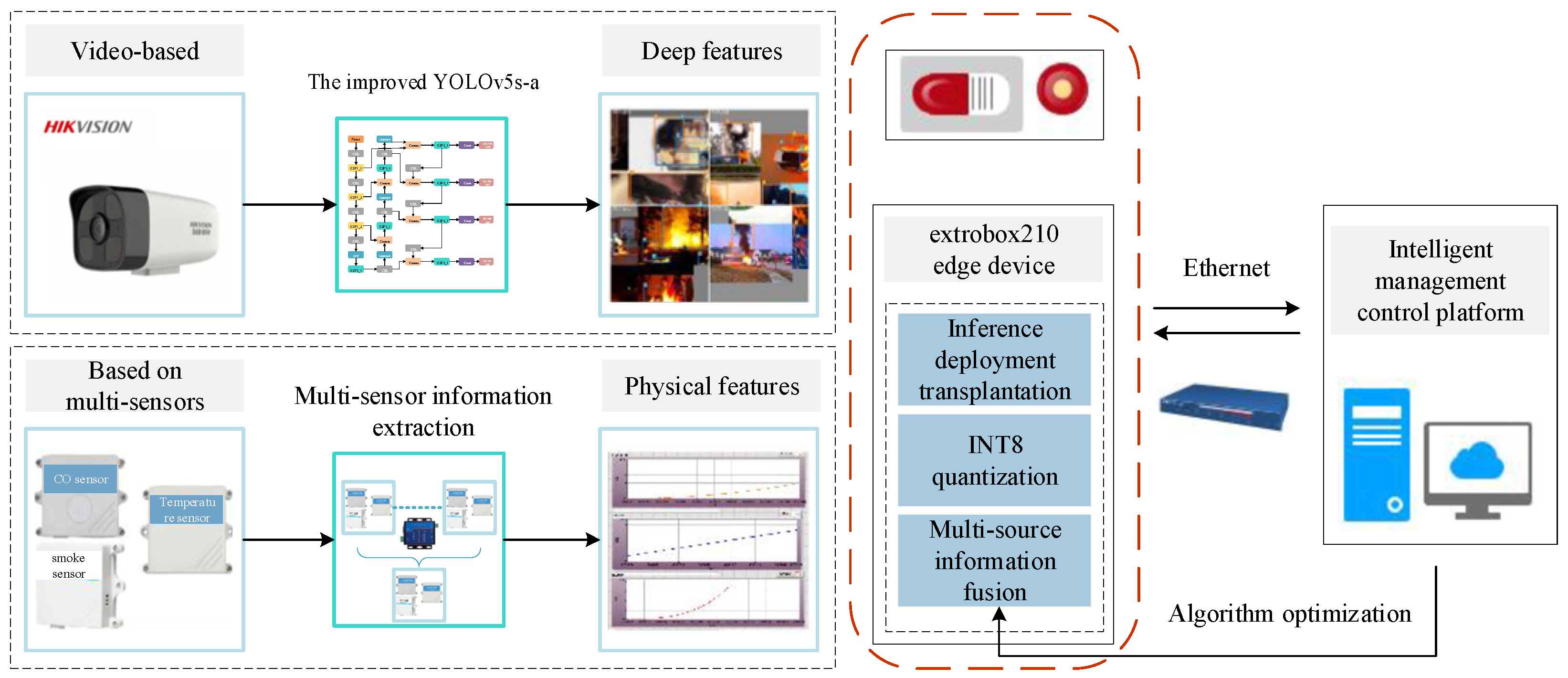 - To meet the real-time requirements of fire detection, the proposed fire detection algorithm is deployed on an intelligent edge processor. By processing and analyzing video and sensor data directly at the edge, this approach eliminates the data transmission delays and response latency associated with cloud-based solutions, thereby significantly improving fire detection speed.