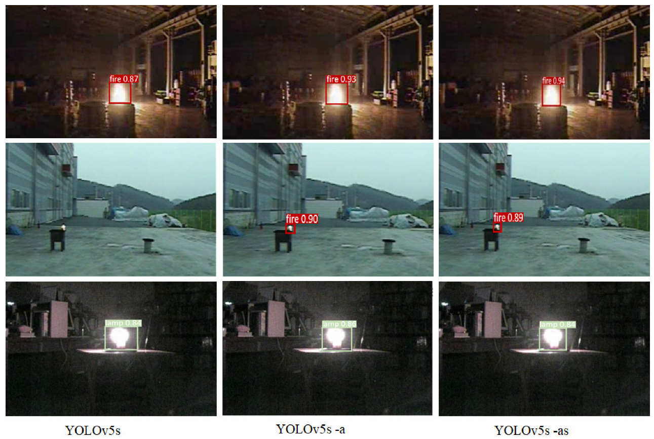 - By incorporating an additional small-object detection layer and introducing an adaptive attention mechanism into the classical YOLOv5s model, this paper enhances the YOLOv5s algorithm to achieve precise detection of small-scale flames while effectively reducing interference from non-fire light sources in underground environments.