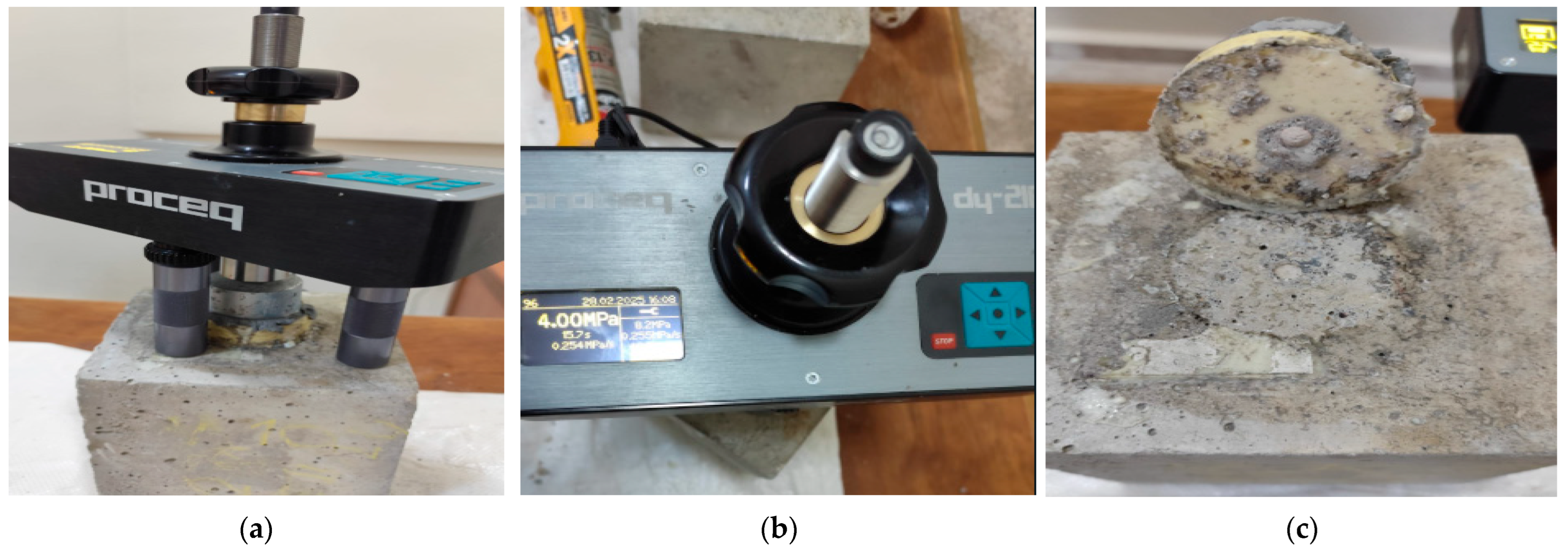 - EN T 1542; Products and Systems for the Protection and Repair of Concrete Structures-Test Methods-Measurement of Bond Strength by Pull-Off. TSE: Ankara, Turkey, 2001.
