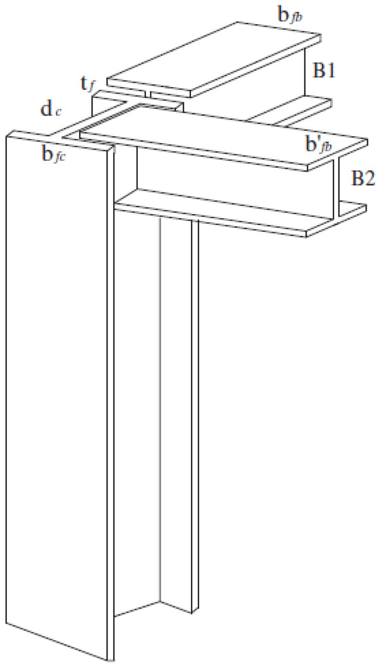 The flange width of the beam section (B2), , at each beam-column connection should be smaller than or at most equal to the distance between the two flanges of the column section [26].