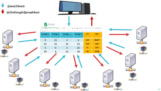 Interaction Codes enable the master and slave computers to link to the online database and write, read, or modify data such as design variable indices and penalized weight values. Here, we used (i) matlab2sheets (developed by Bogaard [60] for exporting data to online tables in the Google Sheets API via MATLAB; (ii) GetGoogleSpreadsheet (written by Daniel [61]) for importing data from the Google Sheets API.