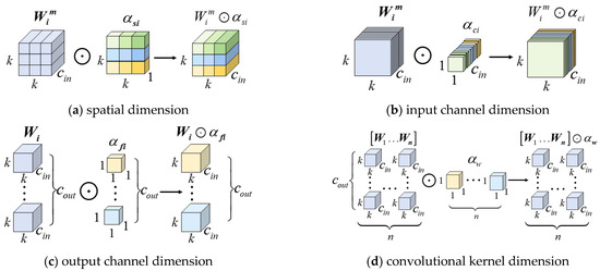 where a ω denotes the convolution parameters along the spatial dimensions, a f is the corresponding parameters associated with the input channel dimension, a c pertains to those along the output channel dimension, and a s represents the parameters related to the kernel’s spatial extent; Moreover, x denotes the input data, W is convolution kernel, and y denotes the output data.
