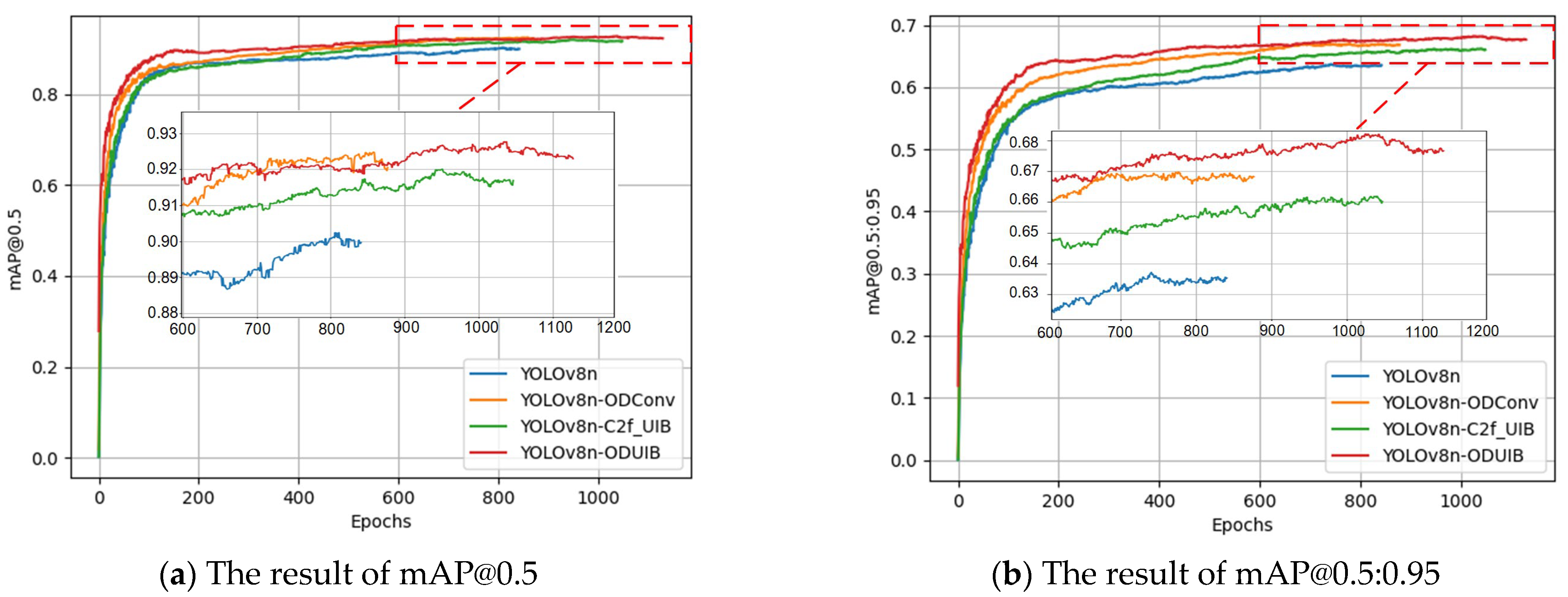 - Group 3: YOLOv8n model incorporating the C2f module integrated with the proposed UIB structure.