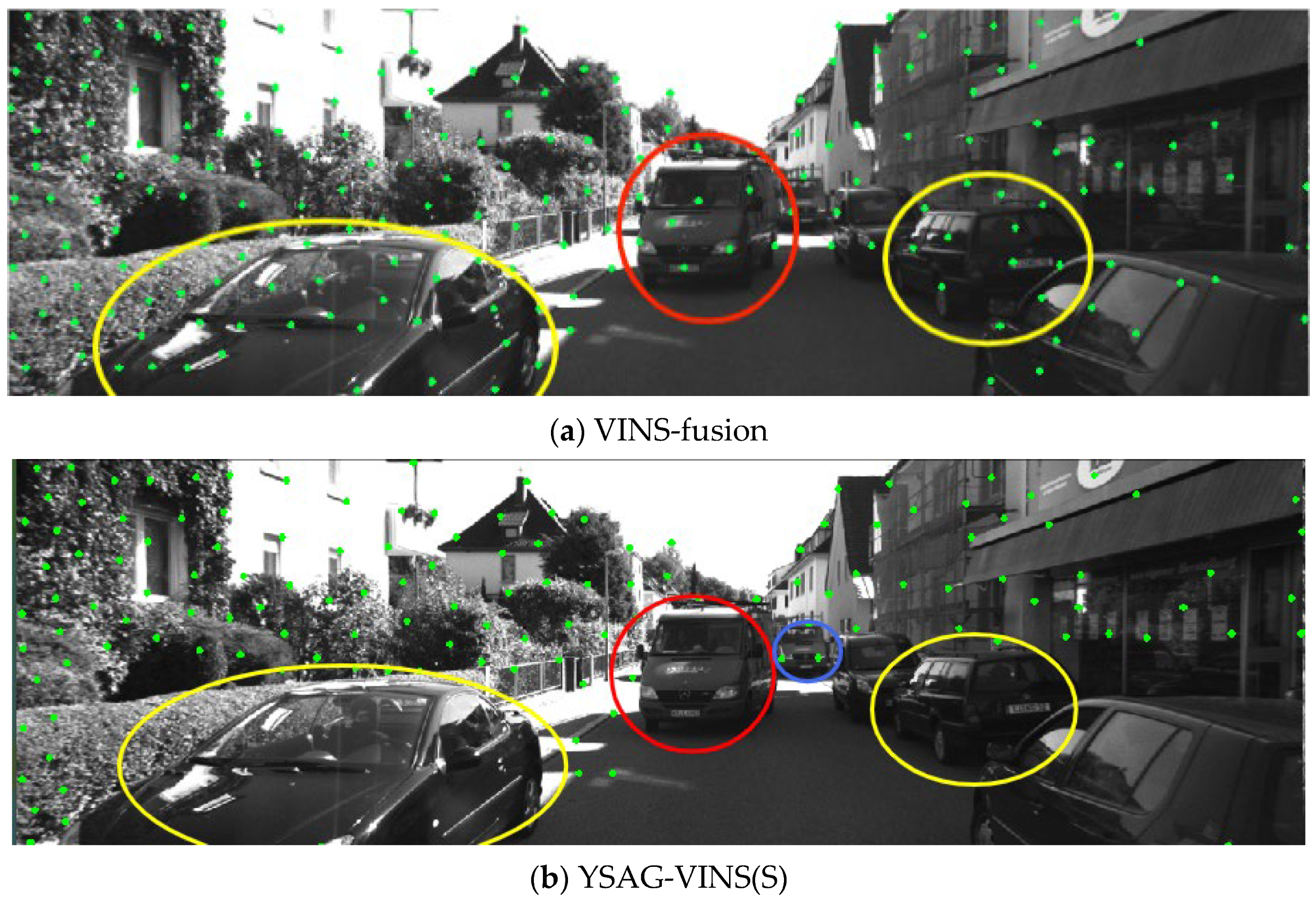 - YSAG-VINS (S), which utilizes the original YOLOv8n model for semantic-based feature removal;