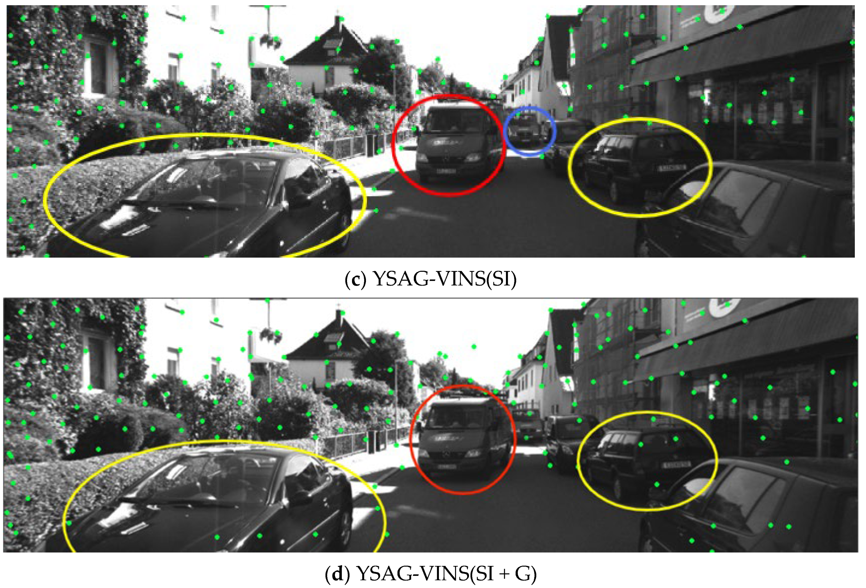 - YSAG-VINS (SI), which employs the improved semantic detection model proposed in this work;