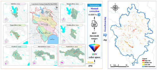Raster data and vectorization workflow of waterlogging risk in major drainage zones of Hefei City.