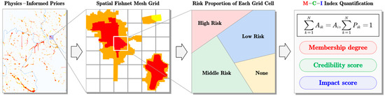 (2) To address the heterogeneity of polygon-based waterlogging risk distributions, a dimension-reduction sampling framework is introduced based on TWD theory. It integrates an MCCM and the CRITIC-TOPSIS method to quantify membership degrees of overlapping risk levels, while also assessing credibility and social influence scores to support robust point-based sampling in spatially complex environments.