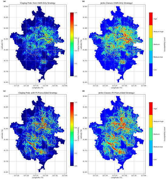A widely adopted approach to UWSA is statistical analysis based on HWR data [17]. Drawing from field surveys, public reports, or remote sensing, these methods utilize spatial regression, weighted overlays, or geostatistical techniques [18]. Their strengths include easy data acquisition and straightforward implementation, making them effective for detecting large-scale patterns and conducting preliminary zoning. At the same time, they can offer direct evidence of historical events. However, their heavy reliance on HWR limits their applicability in newly developed urban areas or under climate change scenarios. For example, certain regions have consistently encountered significant precipitation events, whereas others have remained largely unaffected, which may lead to the lack or irrelevance of past data. At the same time, under extreme rainfall, HWR may encounter situations where it is unable to capture areas prone to waterlogging due to hidden physical loopholes (such as overly small drainage pipes and concave vertical Bridges). Models based only on historical samples thus lack robustness for anticipating intensified rainfall.