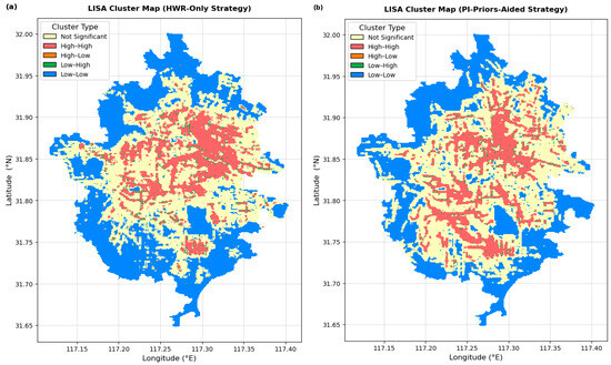 Numerous studies suggest that road surface water exceeding 0.25 to 0.35 m can impair vehicle control. For instance, Yin recommends avoiding roads submerged beyond this depth, which matches typical exhaust pipe height [77]. Similarly, Coles et al. and Green et al. proposed a 0.25 m threshold for emergency vehicle access in the UK [78,79]. Moreover, the Chinese Code for Design of Urban Road Engineering (CJJ37-2012) stipulates that curbstone heights range from 0.1 to 0.2 m. When water depth is below this range, waterlogging is generally confined to the roadway without affecting sidewalks or green belts. As shown in Equation (1), when a grid cell is classified as low or no risk , the water depth remains below 0.15 m. Accordingly, we adopts 0.15 m as the threshold to distinguish between waterlogging-prone and safe areas. Table 2 summarizes the initial classification criteria based on PI-Priors.