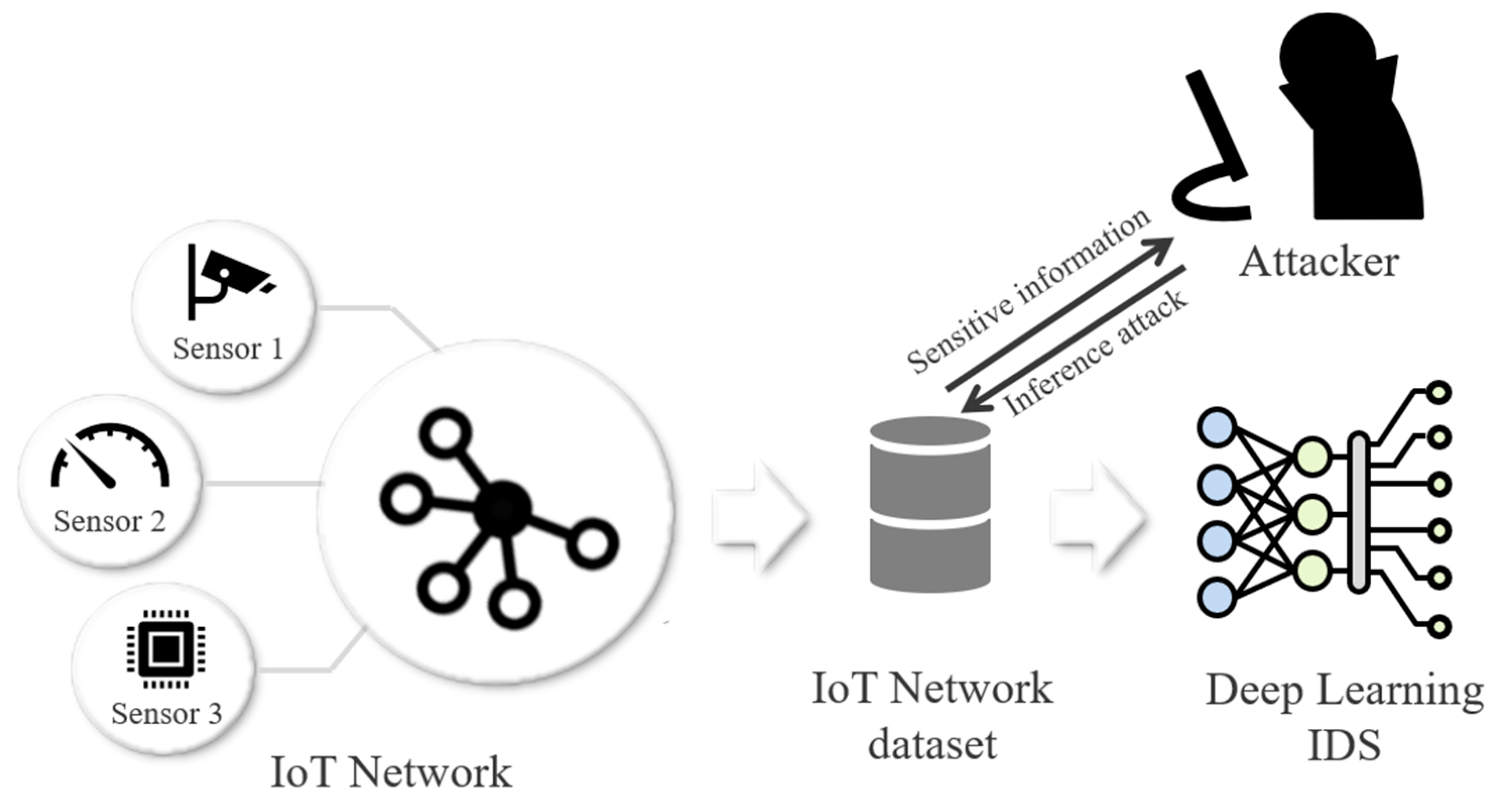 Figure 1 shows an attack scenario where an attacker extracts sensitive information when using IoT network data for modeling.