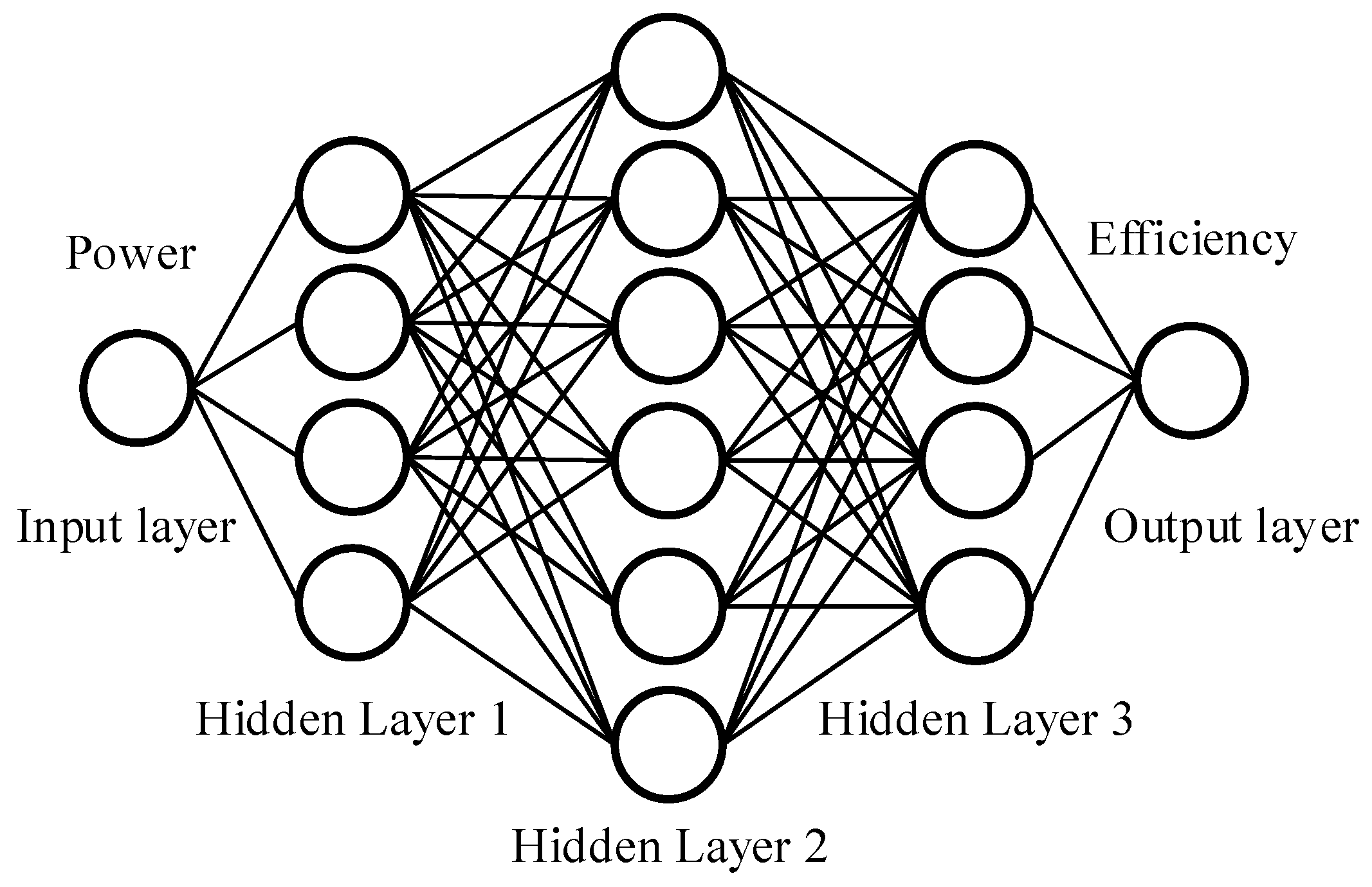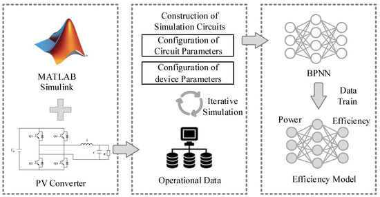 - The neural network is trained by establishing a simulation model to obtain the power loss data of the PV inverter under different operating conditions, thereby constructing its equivalent model. Using the output power of the PV panel as the input power of the inverter enables real-time correction of the PV panel’s output power, providing more accurate support for subsequent system optimization.