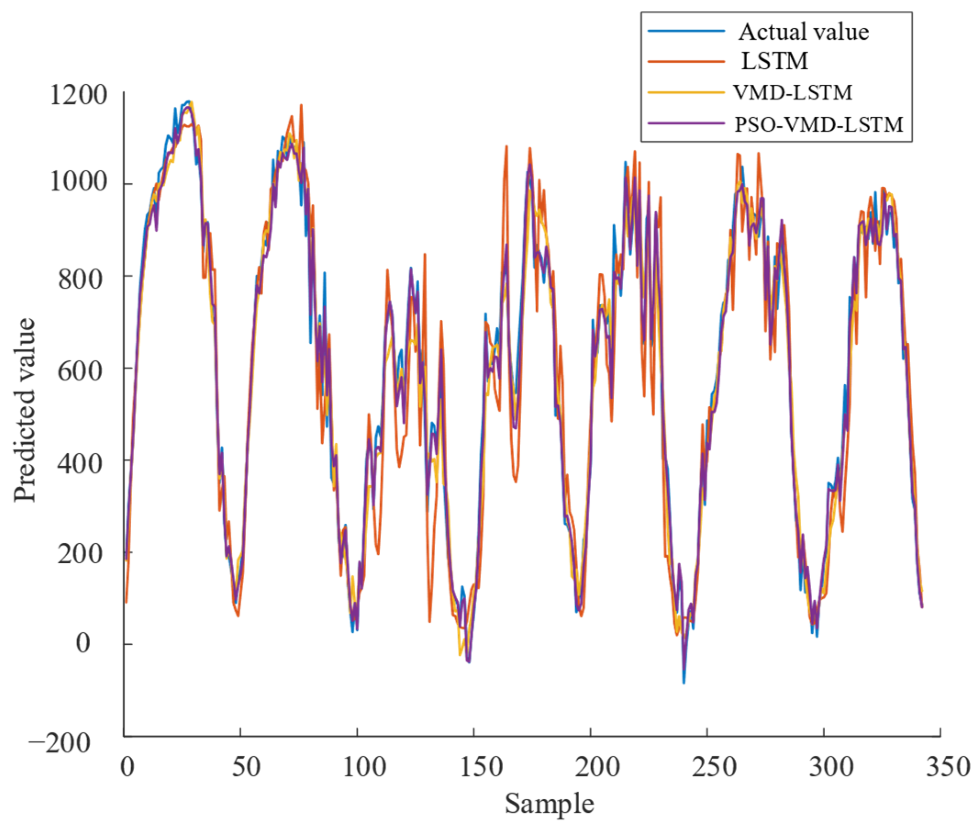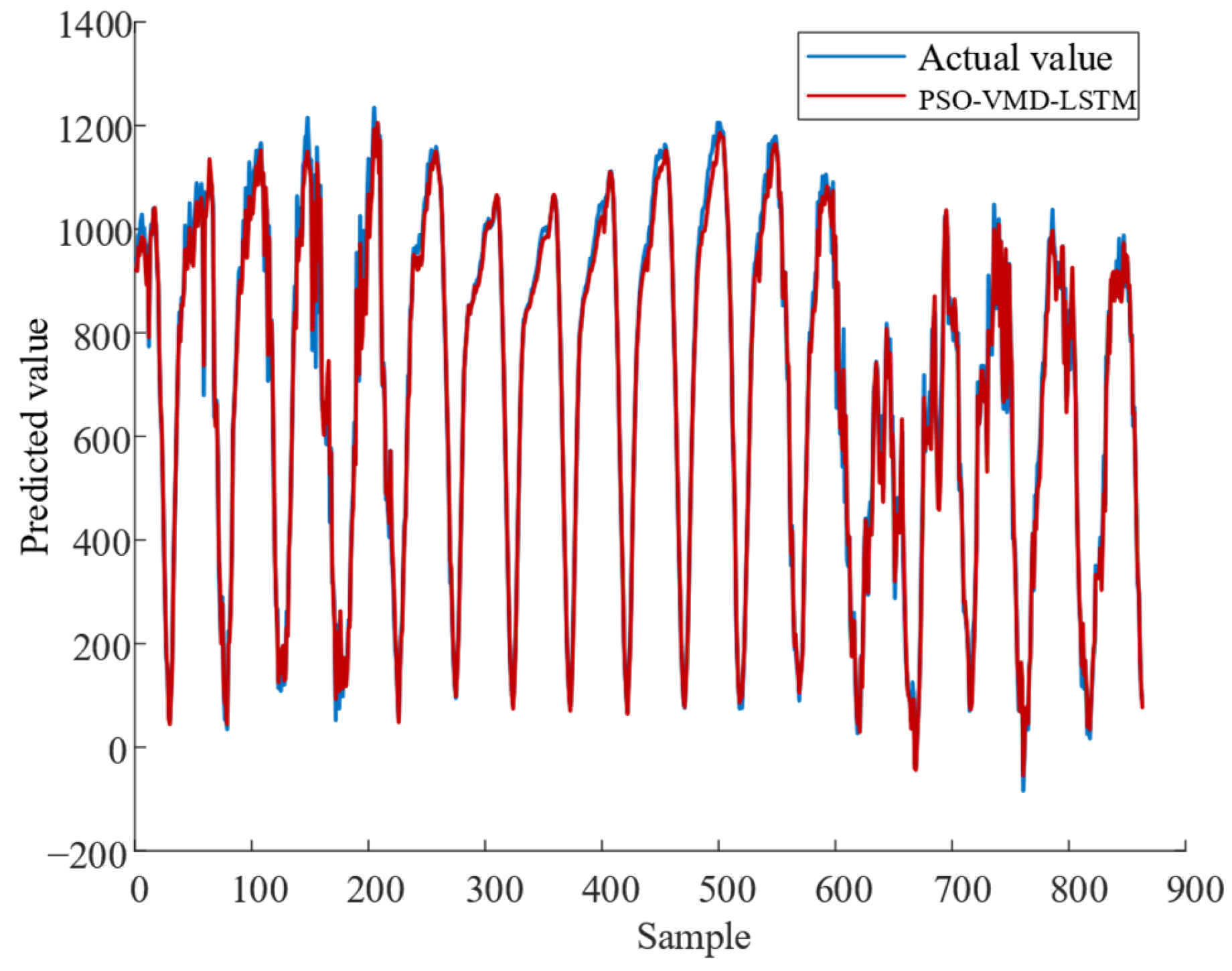 | PSO-VMD-LSTM | 7.55% | 29.28 | 0.9919 |