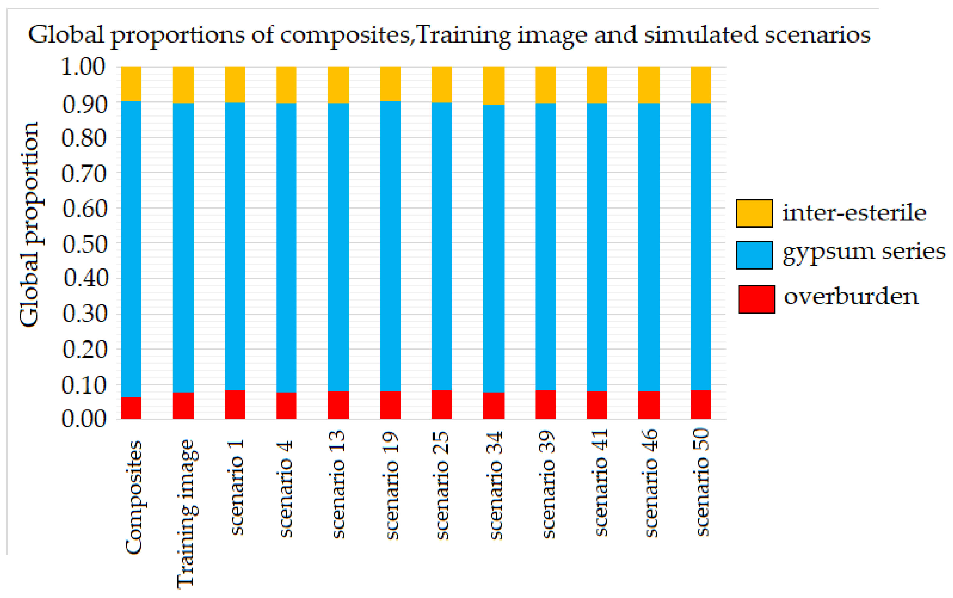 Lithologies | Composites | Training Image (TI) | Simulated Scenarios | |||||||||