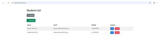 Appendix B.3. Students’ Enrollments in Courses Listing Page