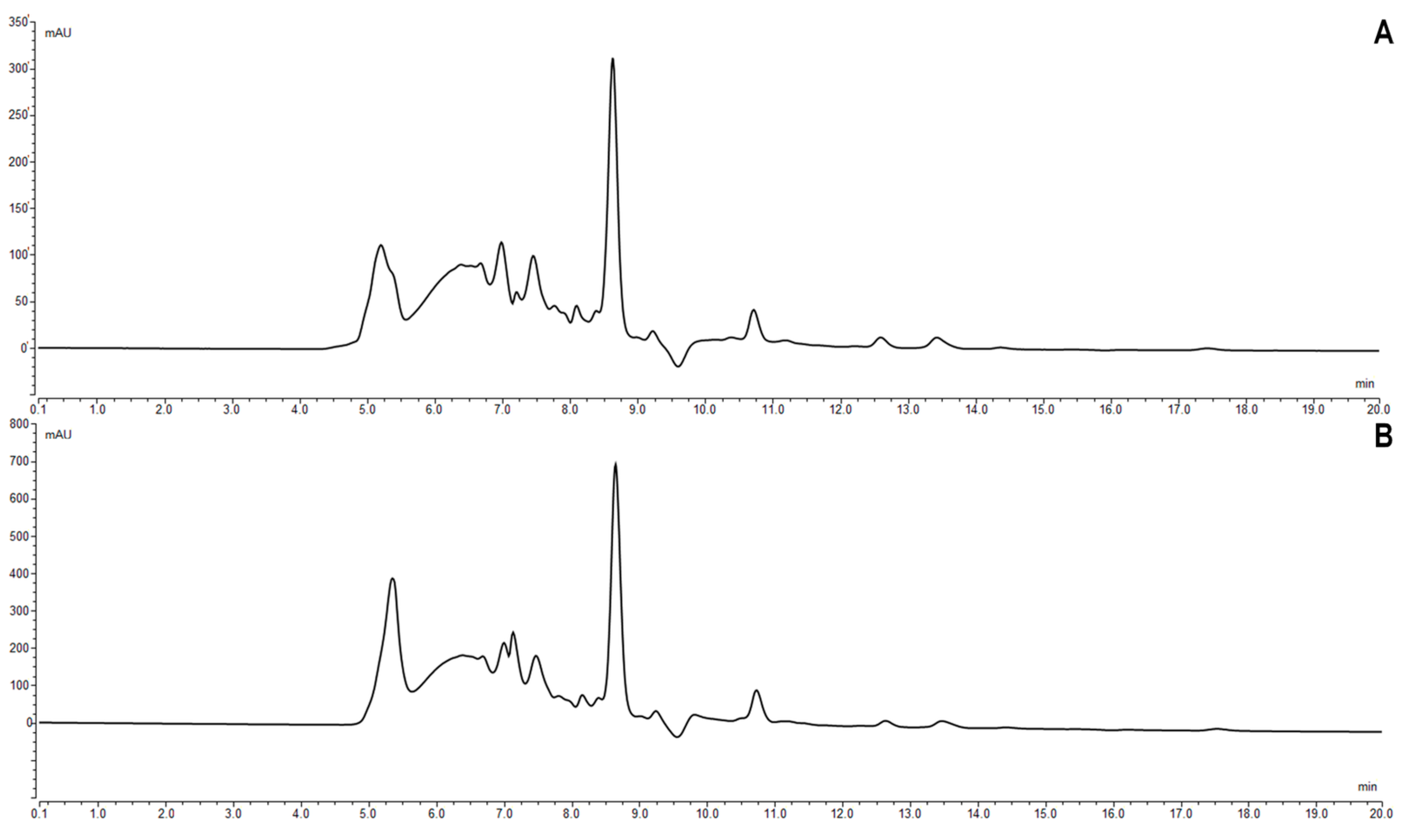 - Re, R.; Pellegrini, N.; Proteggente, A.; Pannala, A.; Yang, M.; Rice-Evans, C. Antioxidant activity applying an improved ABTS radical cation decolorization assay. Free Radic. Biol. Med. 1999, 26, 1231. [Google Scholar] [CrossRef]