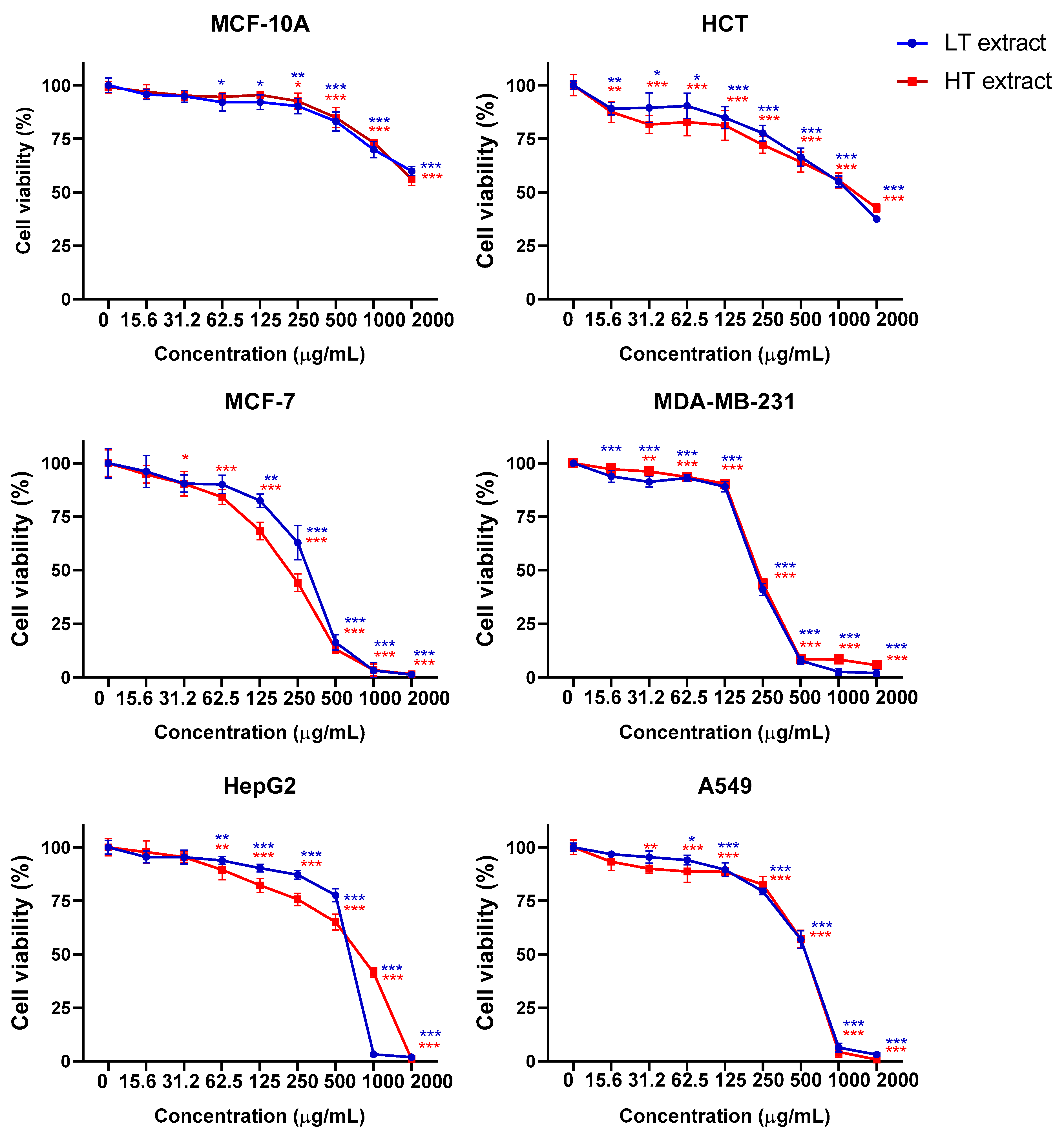 - Goshtasbi, H.; Safary, A.; Movafeghi, A.; Barar, J.; Akbarzadeh-Khiavi, M.; Omidi, Y. Anticancer impacts of the unicellular cyanobacterium Chroococcus turgidus bioactive compounds in colorectal adenocarcinoma. BioImpacts BI 2025, 15, 30867. [Google Scholar] [CrossRef]