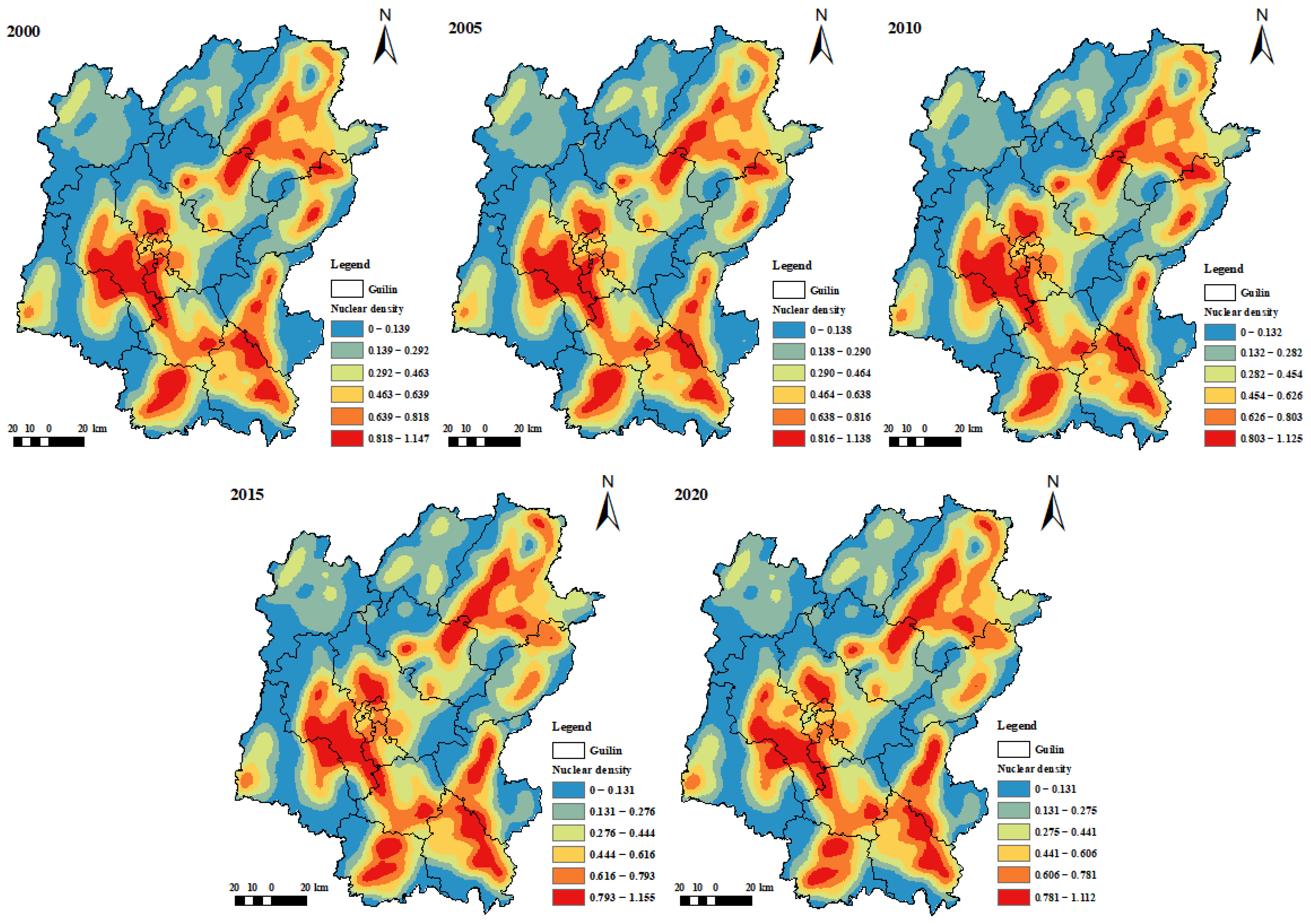 - Zhong, A.; Yang, G. Research on the Change of Land Use Agglomeration Based on Kernel Density Estimation and Hot Spot Analysis. In CRIOCM: International Symposium on Advancement of Construction Management and Real Estate, Proceedings of the International Symposium on Advancement of Construction Management and Real Estate, Wuhan, China, 28–30 November 2020; Springer: Singapore, 2021; pp. 987–1003. [Google Scholar]
