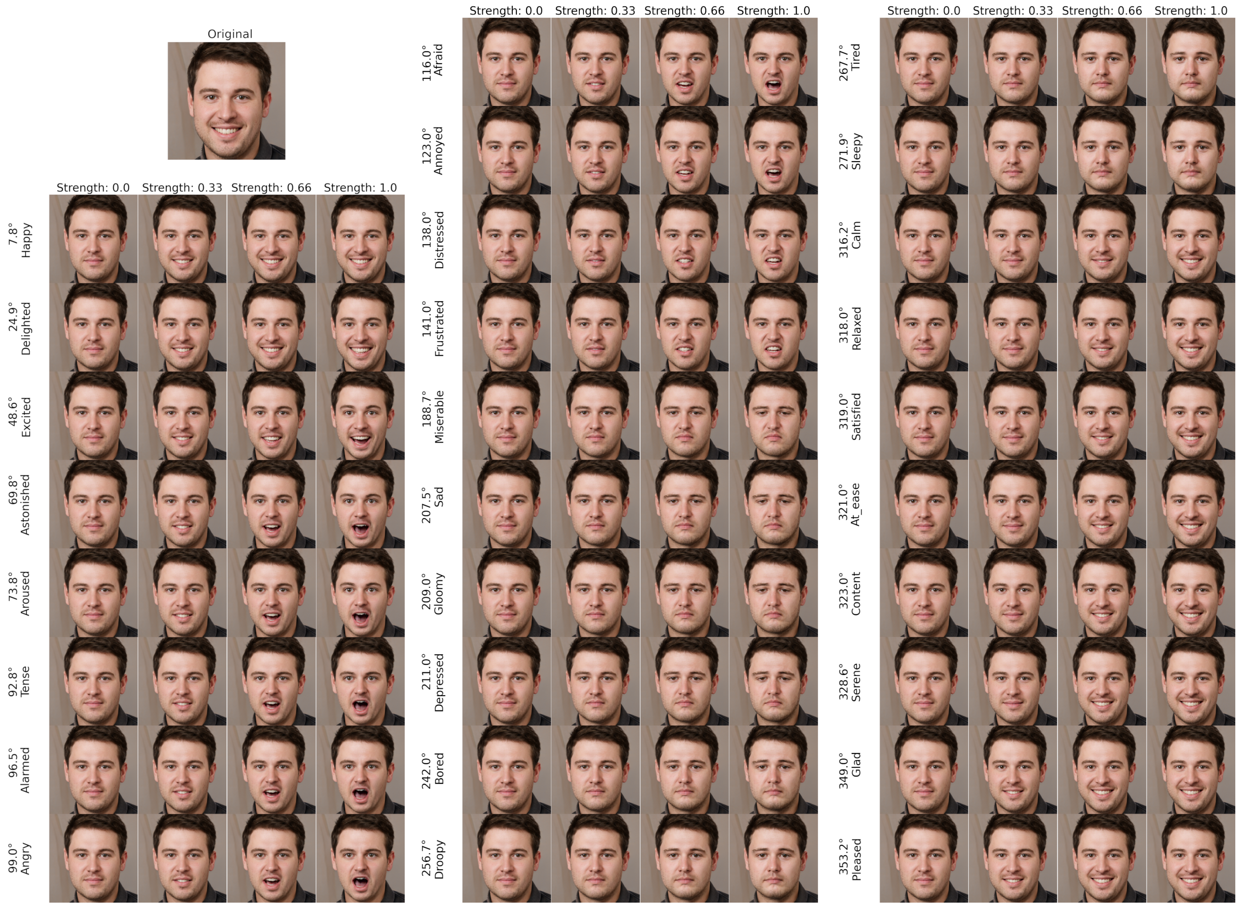 - We hereby propose a systematic evaluation protocol of EmoStyle’s facial expression accuracy across 28 VA directions and 4 intensity levels, with the objective of quantifying the alignment between the intended and perceived emotions.