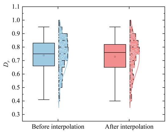 Comparison of boxplots before and after relative density interpolation.