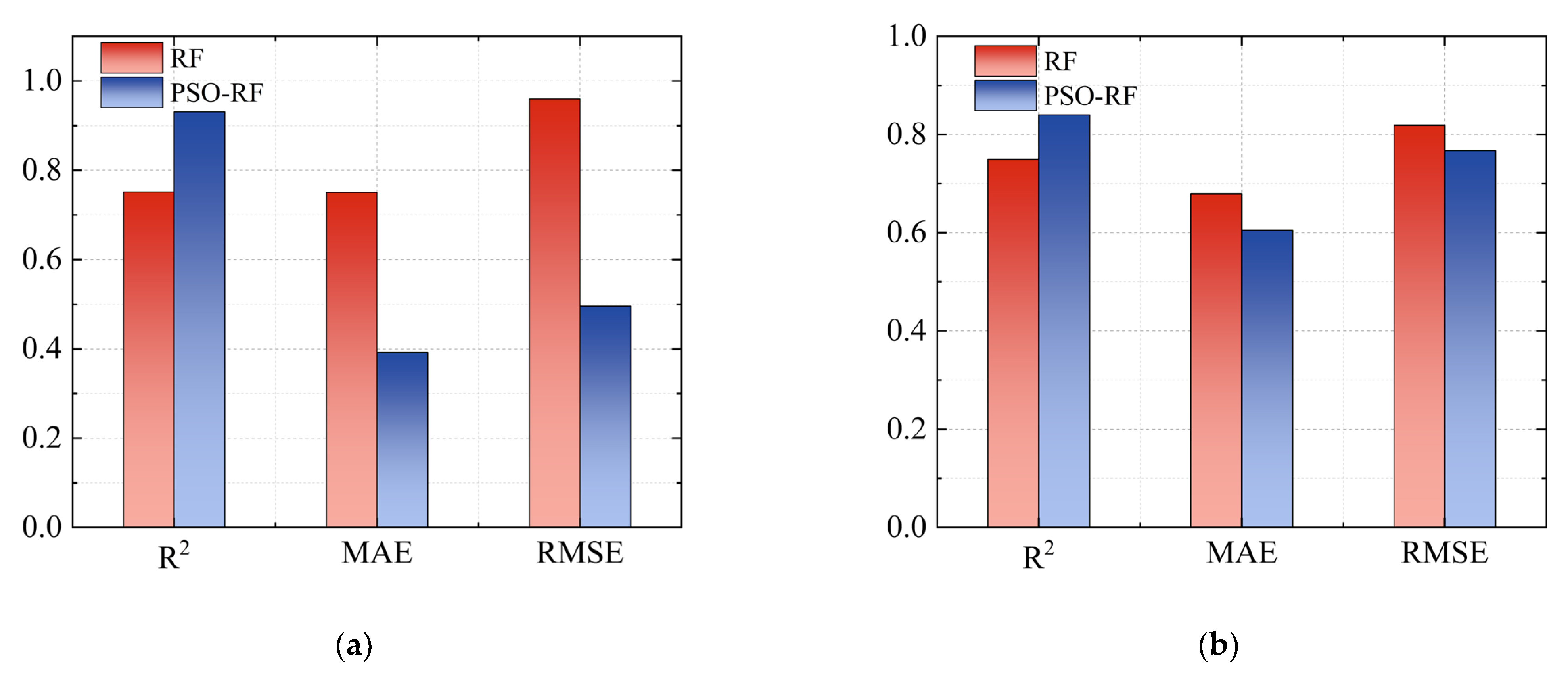 2 is 0.752, while the RMSE of PSO-RF is 0.173, and R
