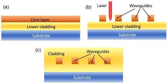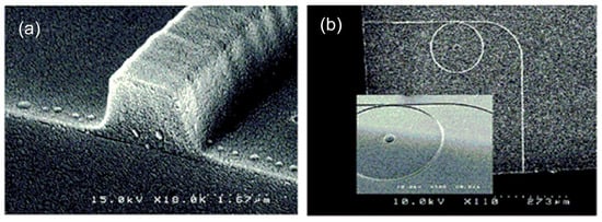 - Choi, C.G.; Kim, J.T.; Han, S.P.; Ahn, S.H. Hot-Embossed Polymeric Optical Waveguides. In Proceedings of the SPIE Volume 5595, Active and Passive Optical Components for WDM Communications IV, Philadelphia, PA, USA, 25–28 October 2004; pp. 98–111. [Google Scholar] [CrossRef]
