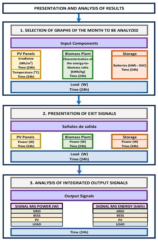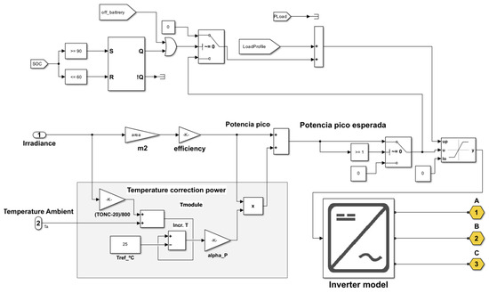 The modelling of the hybrid microgrid components was carried out using validated methodologies that guarantee an accurate representation of their electrical and dynamic behaviour under variable operating conditions. The process followed a sequential approach, beginning with the biomass generation unit, followed by the photovoltaic (PV) system, and concluding with the energy storage system, all of which were subsequently integrated into a centralised energy management system (EMS).