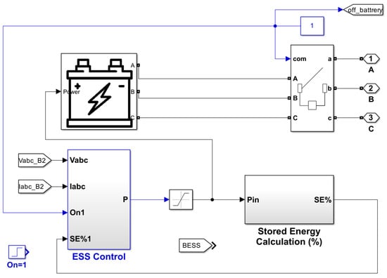 The energy management strategy (EMS) is as follows: a rule-based EMS linked to SoC is adopted with charge/discharge thresholds and inhibitions that activate biomass dispatch when demand deficits or peaks are detected, prioritising solar energy and the strategic use of BESS [13]. This approach is traceable, implementable in contexts with limited communications, and consistent with ‘communicationless’ AC/DC approaches that use margins to reduce losses and improve voltage quality in rural networks with high PV [20]. In terms of stability, prudent operating limits are established to avoid LFOs and multiloop couplings in converters, in accordance with VSG guidelines [21].