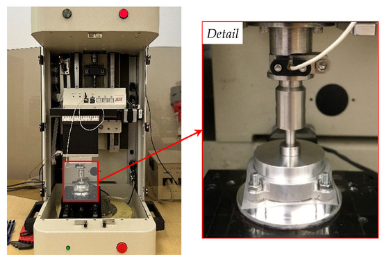The EPHD damper was subjected to quasi-static tests, carried out on two different test rigs. The multifunctional test rig CETR-UMT2 (Figure 3) was used for low compression forces, while a Zwick/Roell Z010 TN universal testing machine was used for compression with higher forces. All the tests were performed at quasi-constant room temperature (≈20–24 °C). A low compression speed of 0.5 mm/s was used throughout the experimental evaluation.