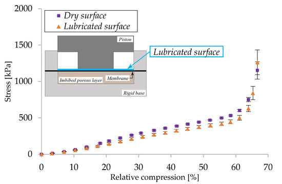 Relative compression is expressed in terms of the porous layer and membrane thickness and is calculated using Equation (2):