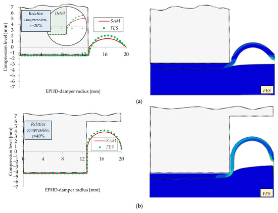 Stress-relative compression variation: (a) comparison of EPHD damper using natural rubber membrane and fluid; (b) comparison of EPHD damper using natural rubber membrane and imbibed S3D.