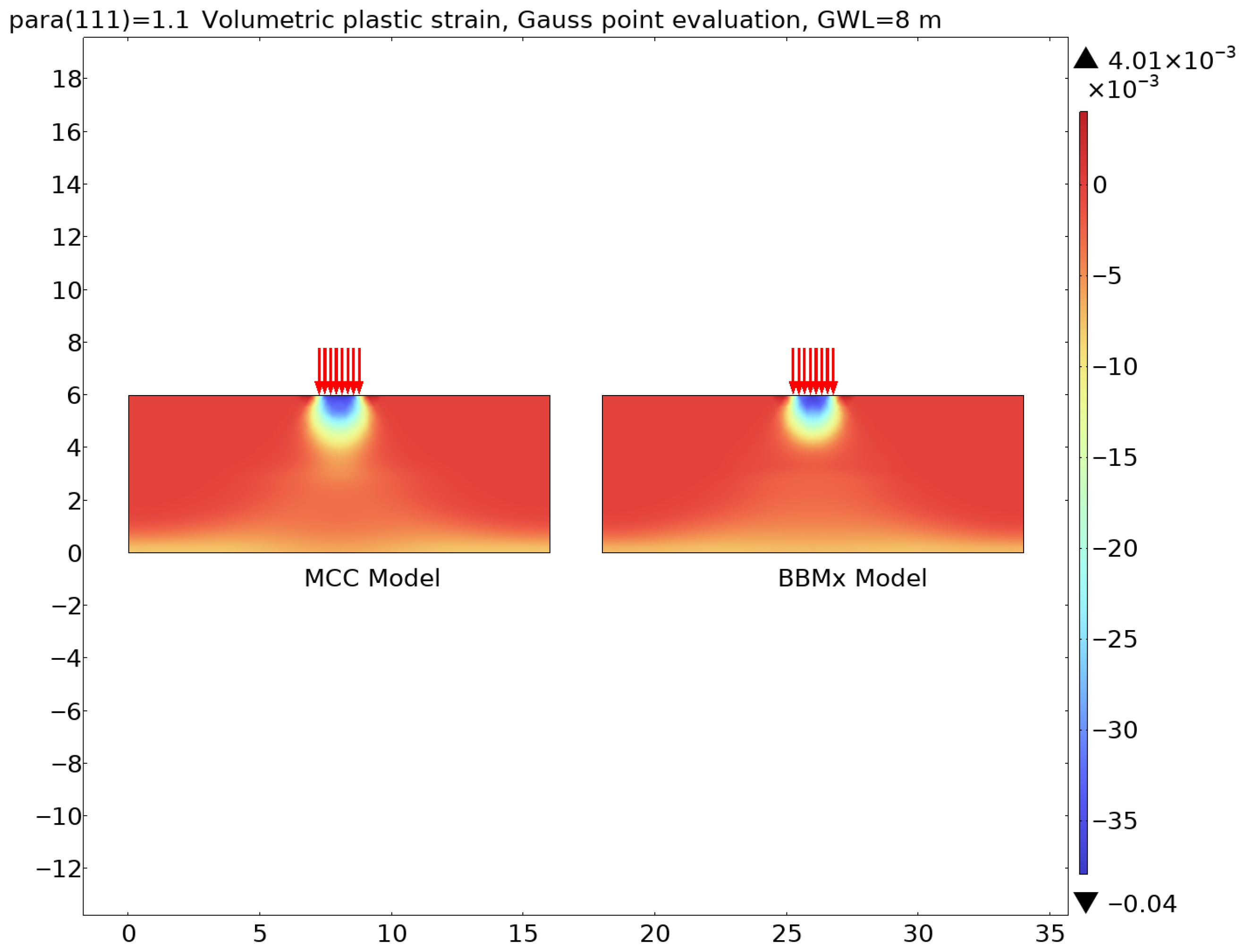 With BBM in COMSOL, the effects of unsaturation, suction and moisture variations on the strength, deformability and stability of soils can be studied, extending the classical concepts in MCC for real situations in which the soil is not completely saturated.