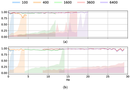 Evolution of the relative accuracy and the predictive uncertainty as a function of the Helmholtz number with an increased SNR. (a) Increased SNR: . (b) Reference SNR: .
