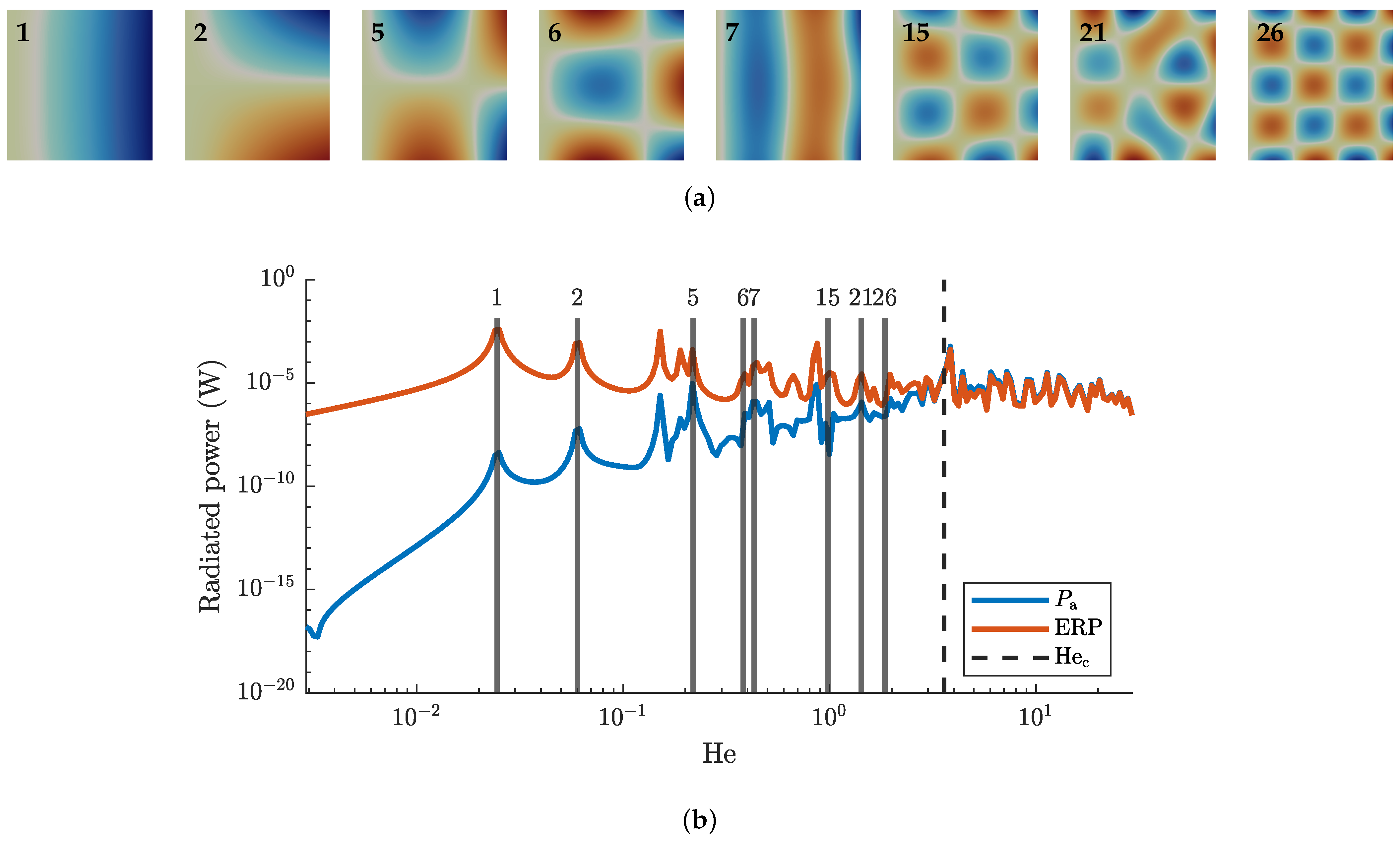 - Kvist, K.; Sorokin, S.V.; Larsen, J.B. Radiation Efficiency Varying Equivalent Radiated Power. J. Acoust. Soc. Am. 2025, 157, 169–177. [Google Scholar] [CrossRef] [PubMed]