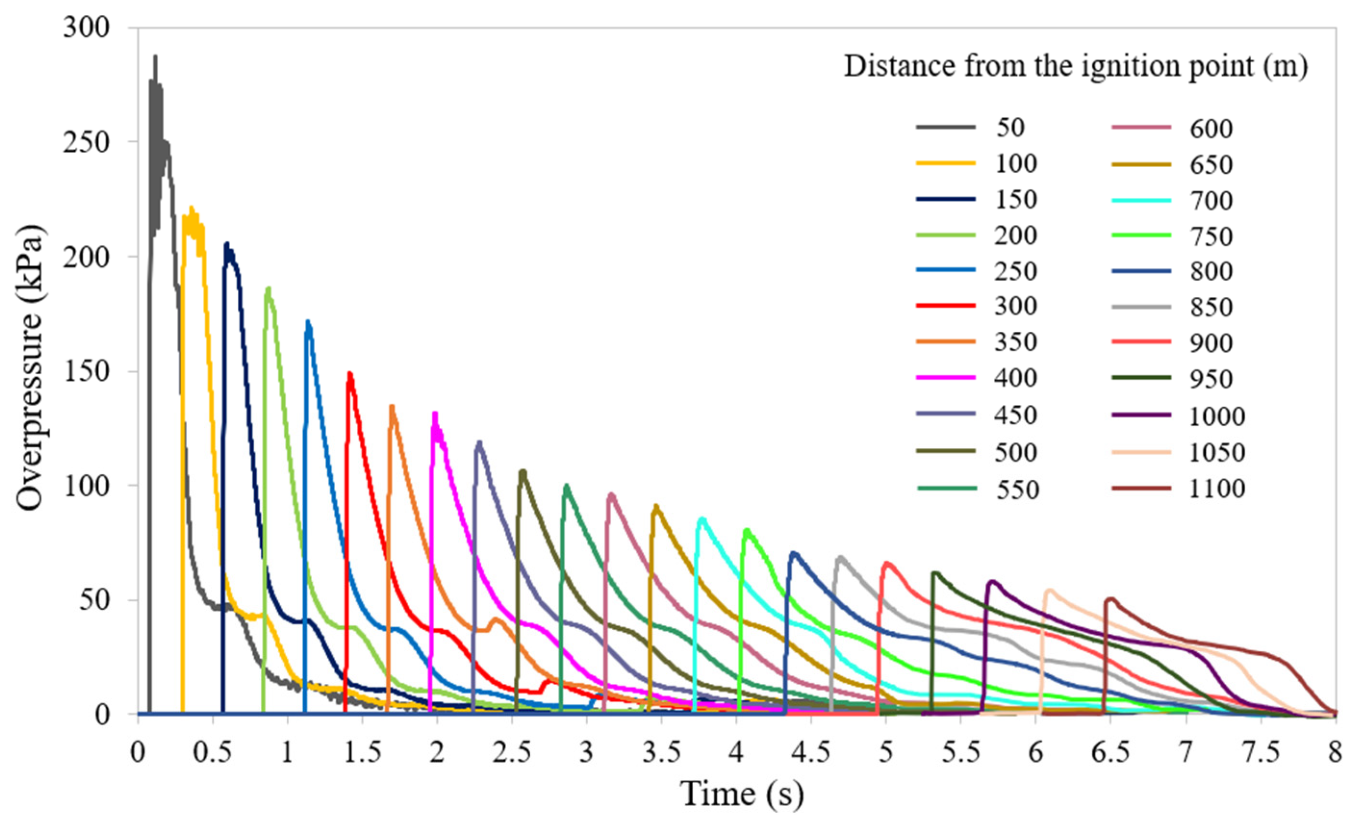 - Molkov, V.; Dery, W. The blast wave decay correlation for hydrogen tank rupture in a tunnel fire. Int. J. Hydrog. Energy 2020, 45, 31289–31302. [Google Scholar] [CrossRef]