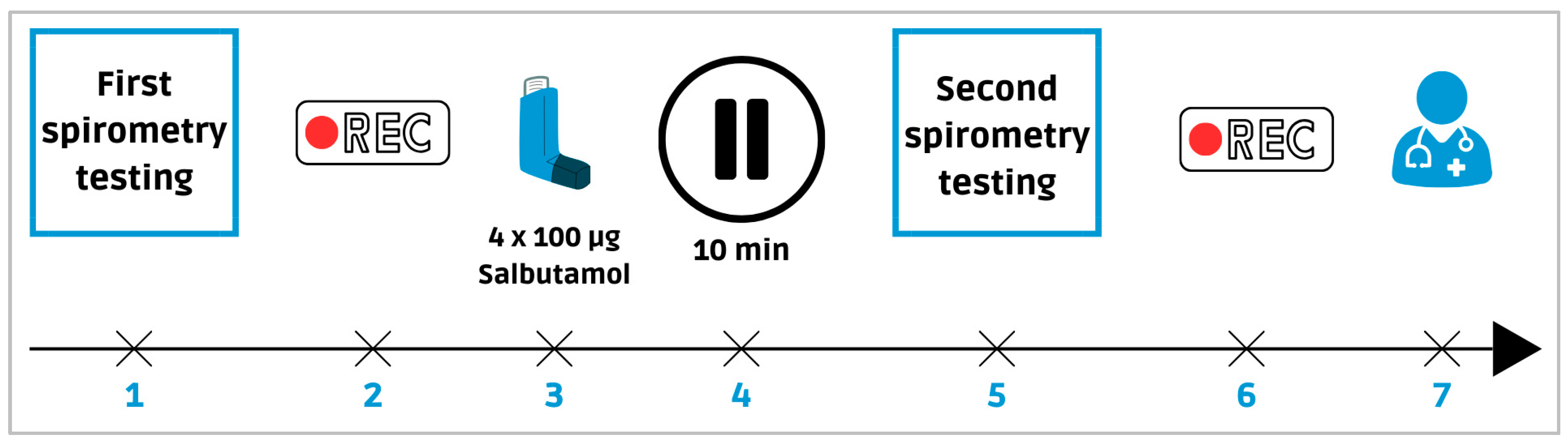 - Topalovic, M.; Das, N.; Burgel, P.-R.; Daenen, M.; Derom, E.; Haenebalcke, C.; Janssen, R.; Kerstjens, H.A.M.; Liistro, G.; Louis, R.; et al. Artificial Intelligence Outperforms Pulmonologists in the Interpretation of Pulmonary Function Tests. Eur. Respir. J. 2019, 53, 1801660. [Google Scholar] [CrossRef]