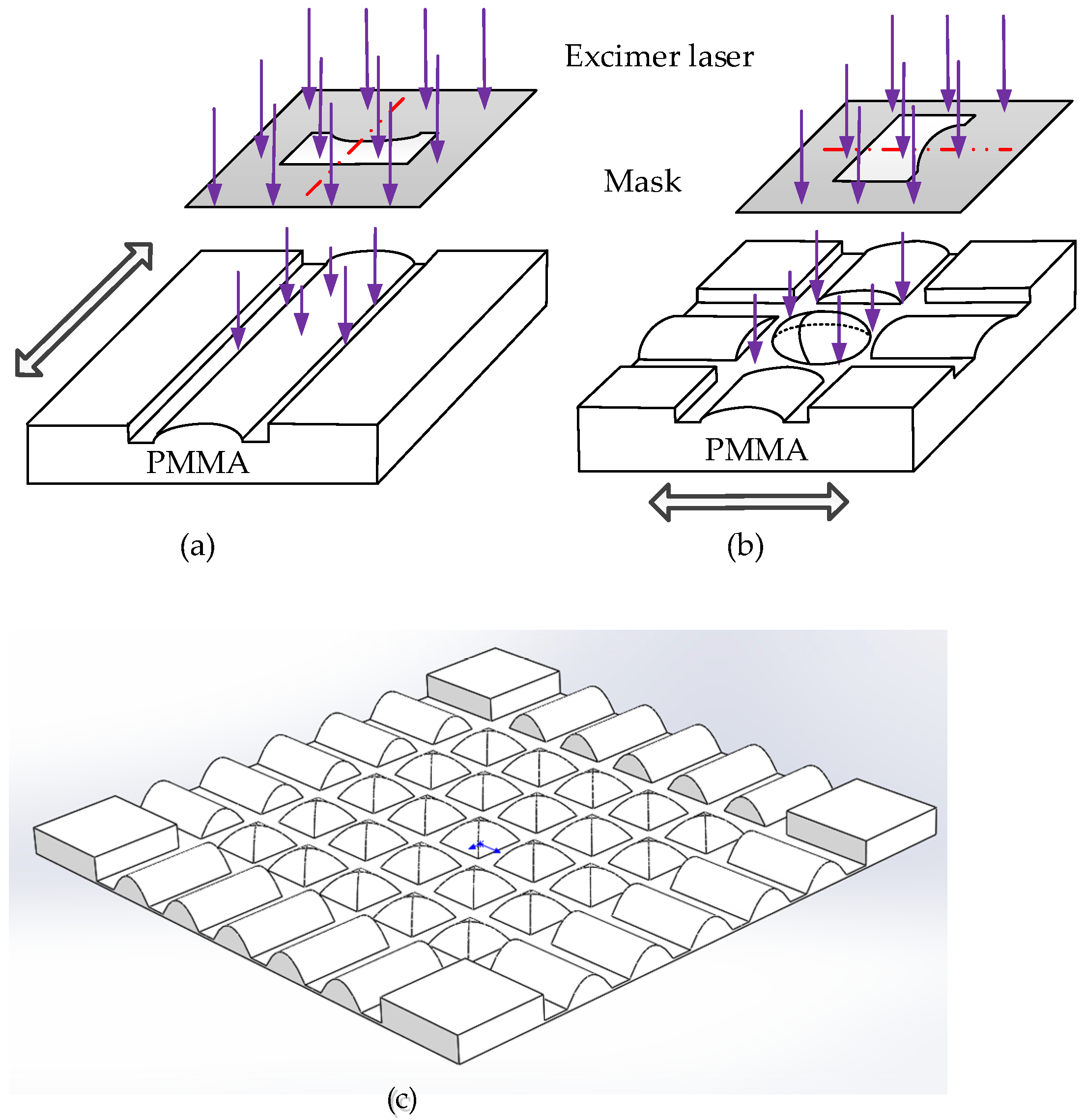 - Liu, X.; Yu, L. Optical Nanofabrication of Concave Microlens Arrays. Laser Photonics Rev. 2019, 13, 1800272. [Google Scholar] [CrossRef]